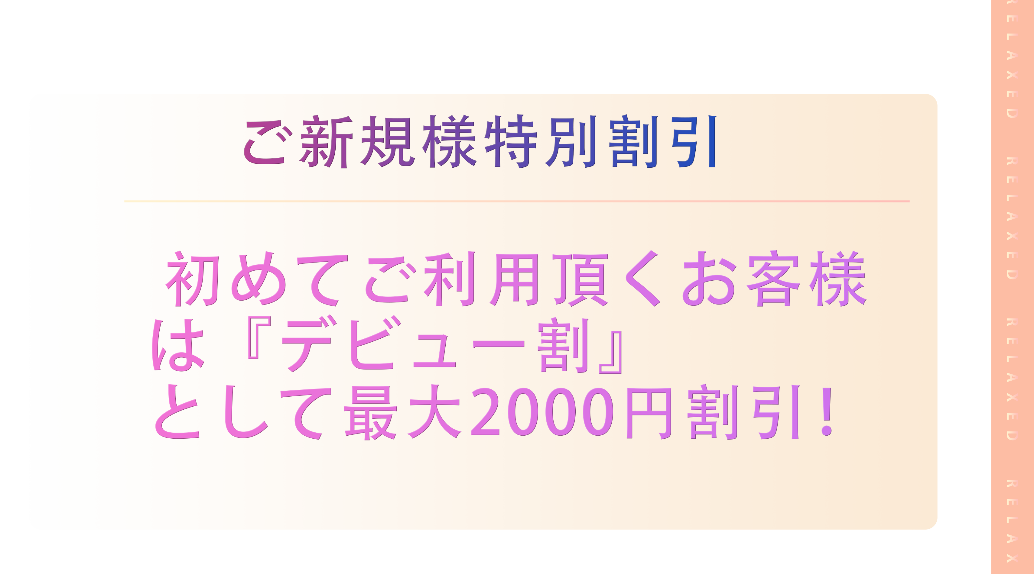 マッサージ技術+おもてなし心+高い美意識を併せ持つ厳選されたセラピストが貴様の体調・お好みに応じて究極の癒しマッサージを提供させていただきます。個室の空間で全てを忘れセラピストのリズムに身を任せ貴様自身を取り戻してください疲れた体を癒しながらストレスの発散をし、健やかな状態を保ちます